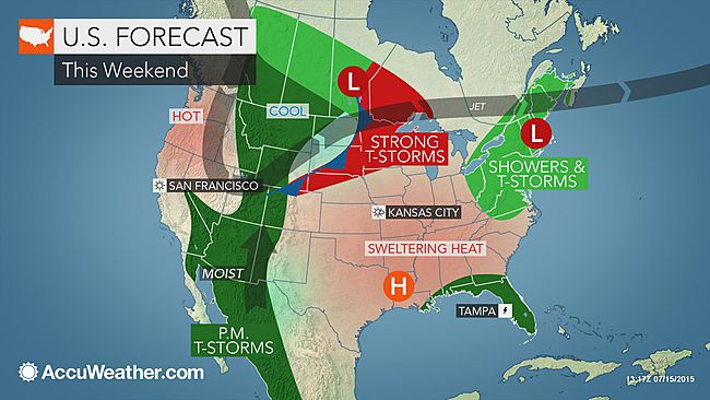 Previsão para o final de semana nos EUA - Fonte: Accuweather