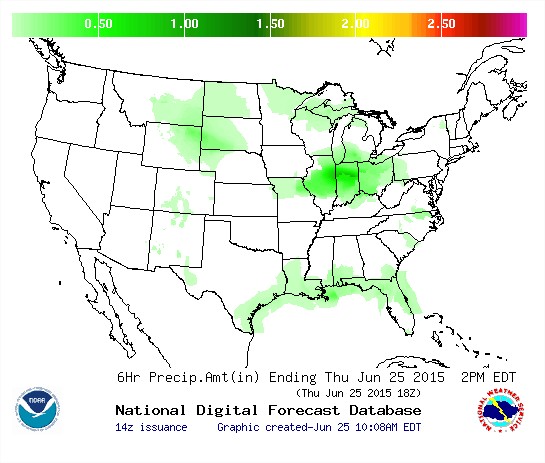Nesta manhã, fortes chuvas caíram sobre Iowa, Illinois, Indiana, Missouri e as novas previsões indicam mais precipitações para estes e outros estados com grande importância na produção de soja dos Estados Unidos nos próximos sete dias. As informações que partem do Serviço Nacional de Meteorologia indicam que nos períodos dos 6 a 10 e 8 a 14 dias, o clima deverá continuar úmido e com temperaturas mais amenas.